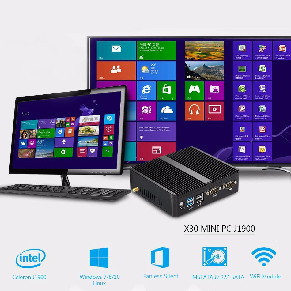 XCY Mini PC Intel Celeron J1900 Quad-Core Fanless PC Micro Desktop HTPC HDMI VGA WiFi Dual LAN 4xUSB Windows 10 Win 8 Win 7 : Click Here